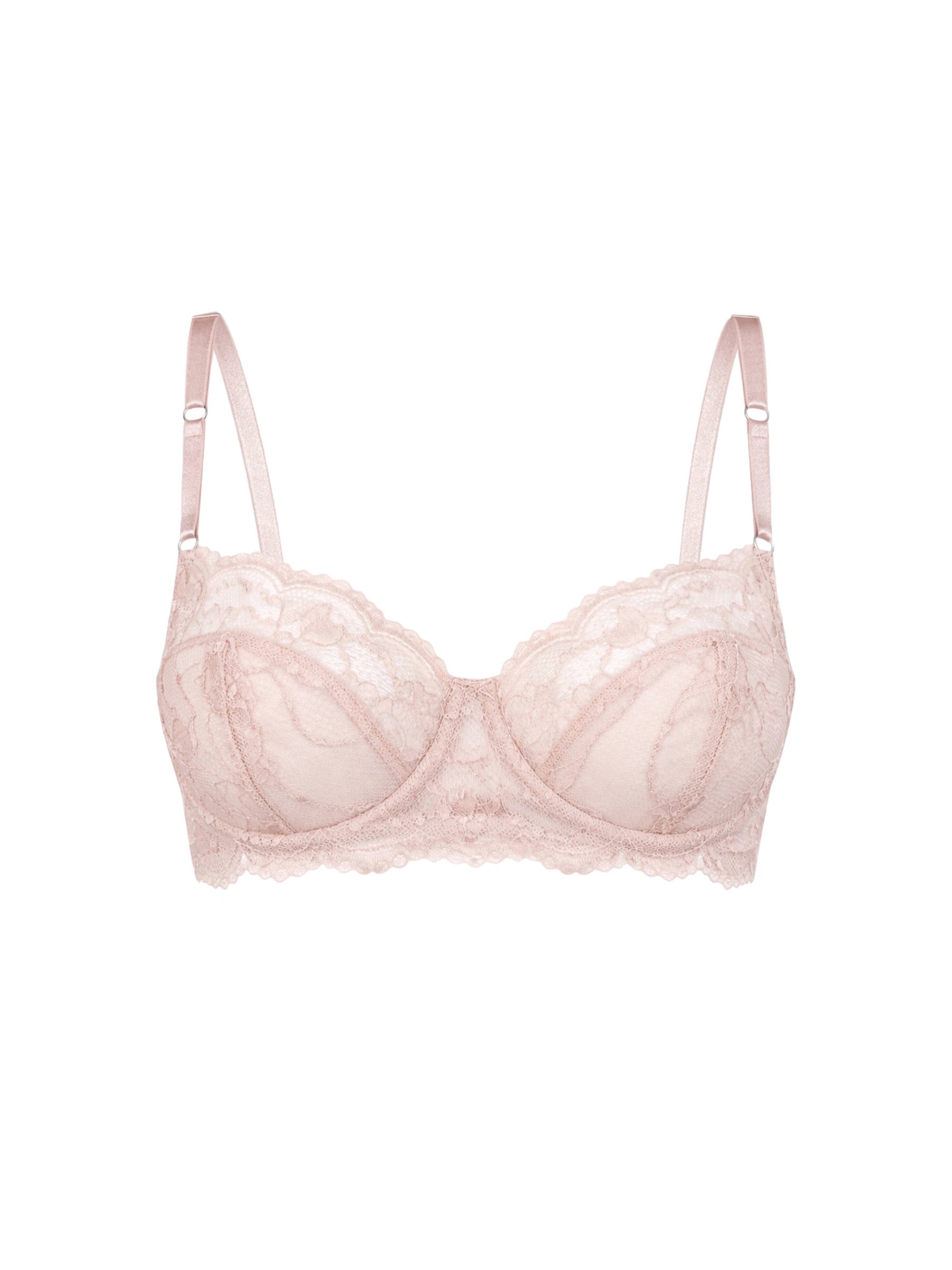Koronkowy biustonosz pudrowy – miękka konstrukcja premium z fiszbinami