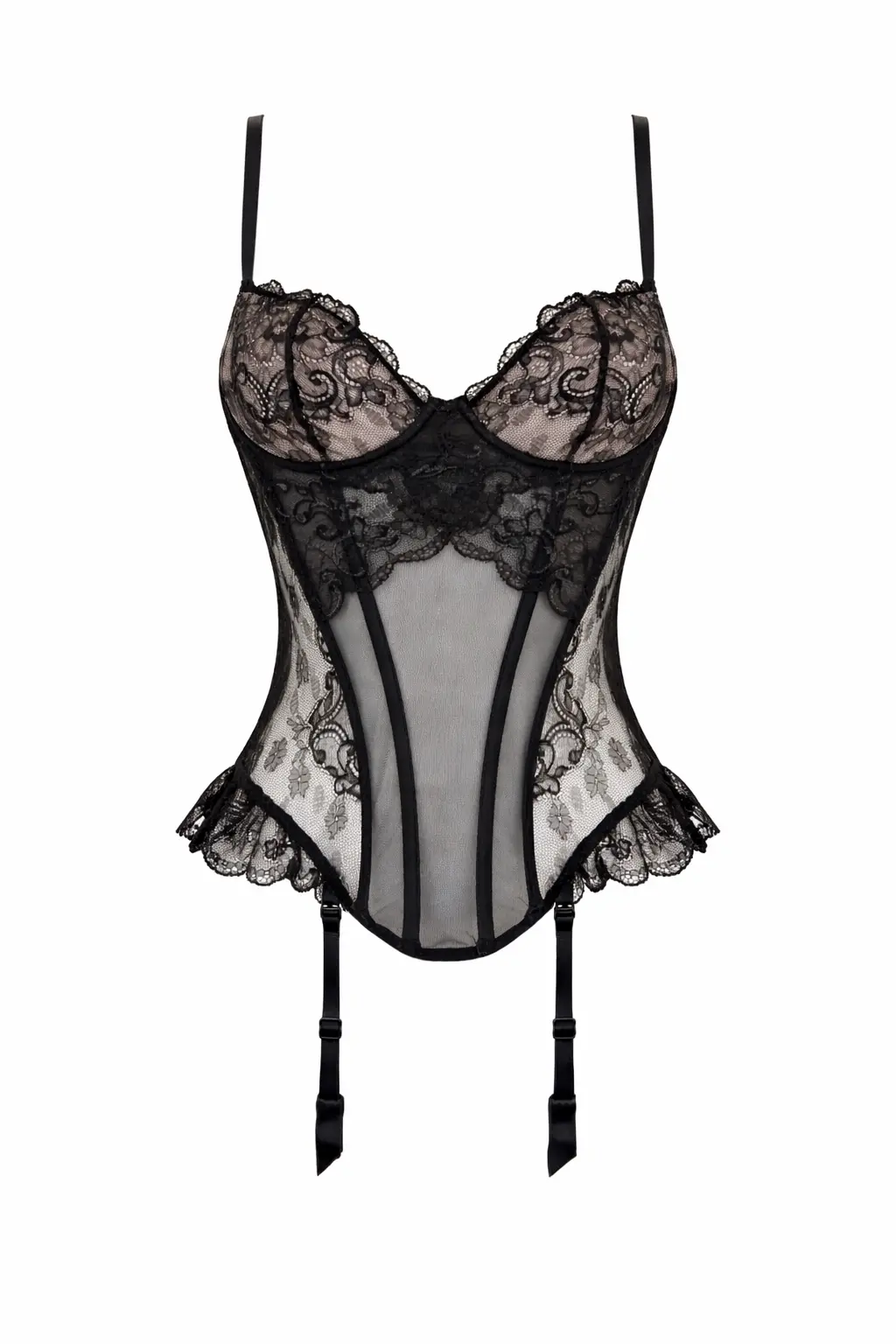 Kluczowym elementem modelu są dwuwarstwowe miseczki, które mimo zastosowania koronki nie prześwitują. Zapewniają one pełne podtrzymanie biustu oraz poczucie bezpieczeństwa, dzięki czemu gorset można nosić nie tylko jako bieliznę, ale również jako samodzielny top. To rozwiązanie sprawia, że Première doskonale sprawdza się w stylizacjach wieczorowych oraz modowych zestawieniach inspirowanych pokazami mody i elegancją red carpet.